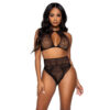 Conjunto de 2 peças. Top curto de rede pontilhada com detalhes em renda e calcinha fio dental de cintura alta da prestigiada marca de lingerie Leg Avenue. Aumente a sua feminilidade obtendo uma peça exclusiva de sedução, sensualidade e elegância.