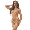 SUBBLIME – 954345 SUTIÃ + TANGA + CINTO-LIGA DESIGN FLORAL AMARELO S/M